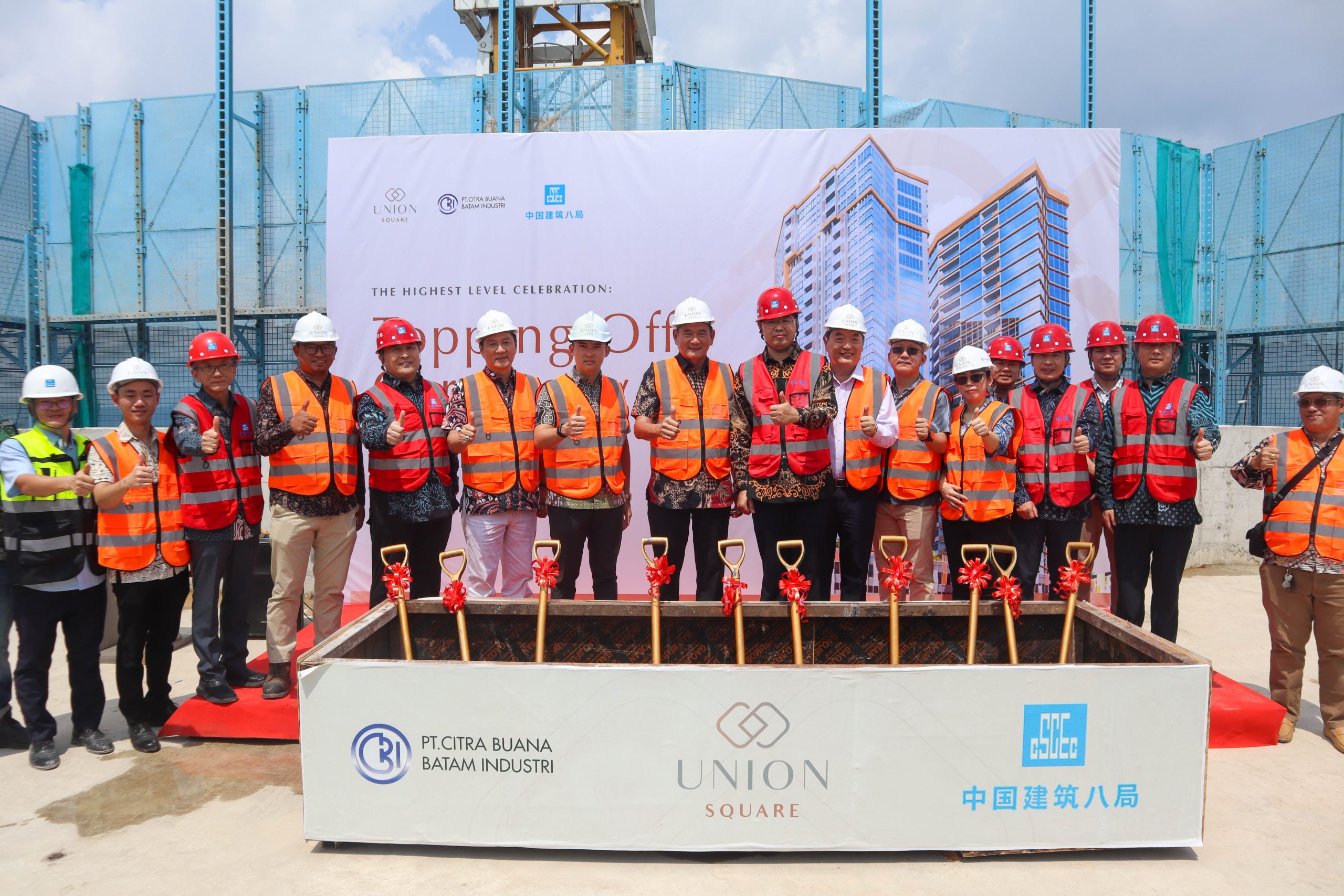 BATAM – PT Citra Buana Batam Industri (CBBI) berkolaborasi dengan PT China Construction Overseas Development Shanghai (CCODS) menggelar acara topping off apartemen Union Square.