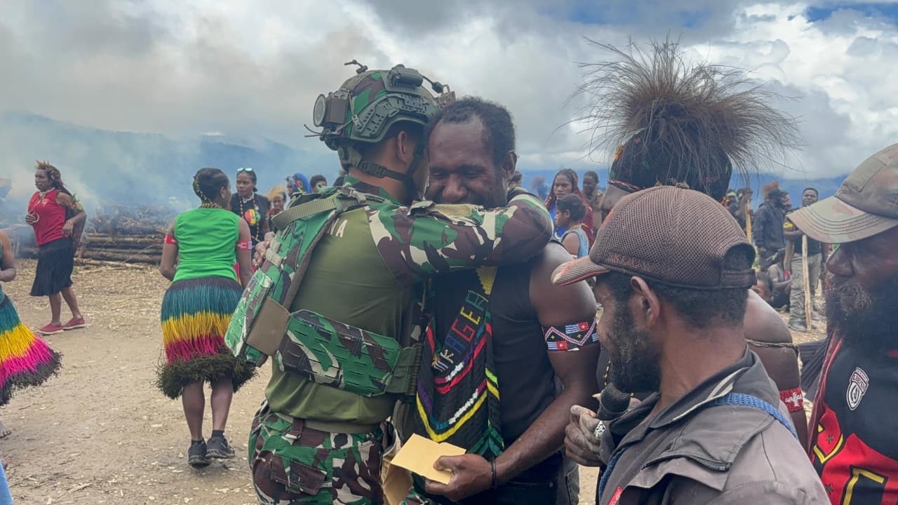 PUNCAK JAYA – Satgas Pamtas RI-PNG Kewilayah Yonif 136/Tuah Sakti mengikuti tradisi bakar batu bersama masyarakat setempat di Gereja Induk Nume, Kabupaten Puncak Jaya, Papua, Kamis (19/2/2026).