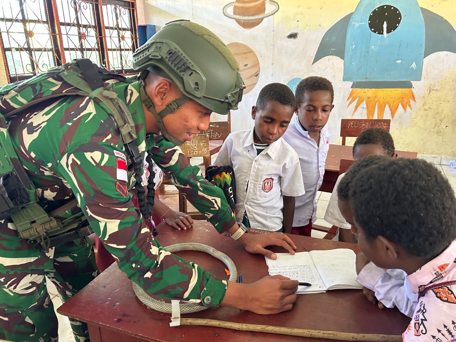 PAPUA – Satgas Pamtas RI–PNG Yonif 136/Tuah Sakti kembali menunjukkan aksi nyata dalam mendukung dunia pendidikan di wilayah penugasan.