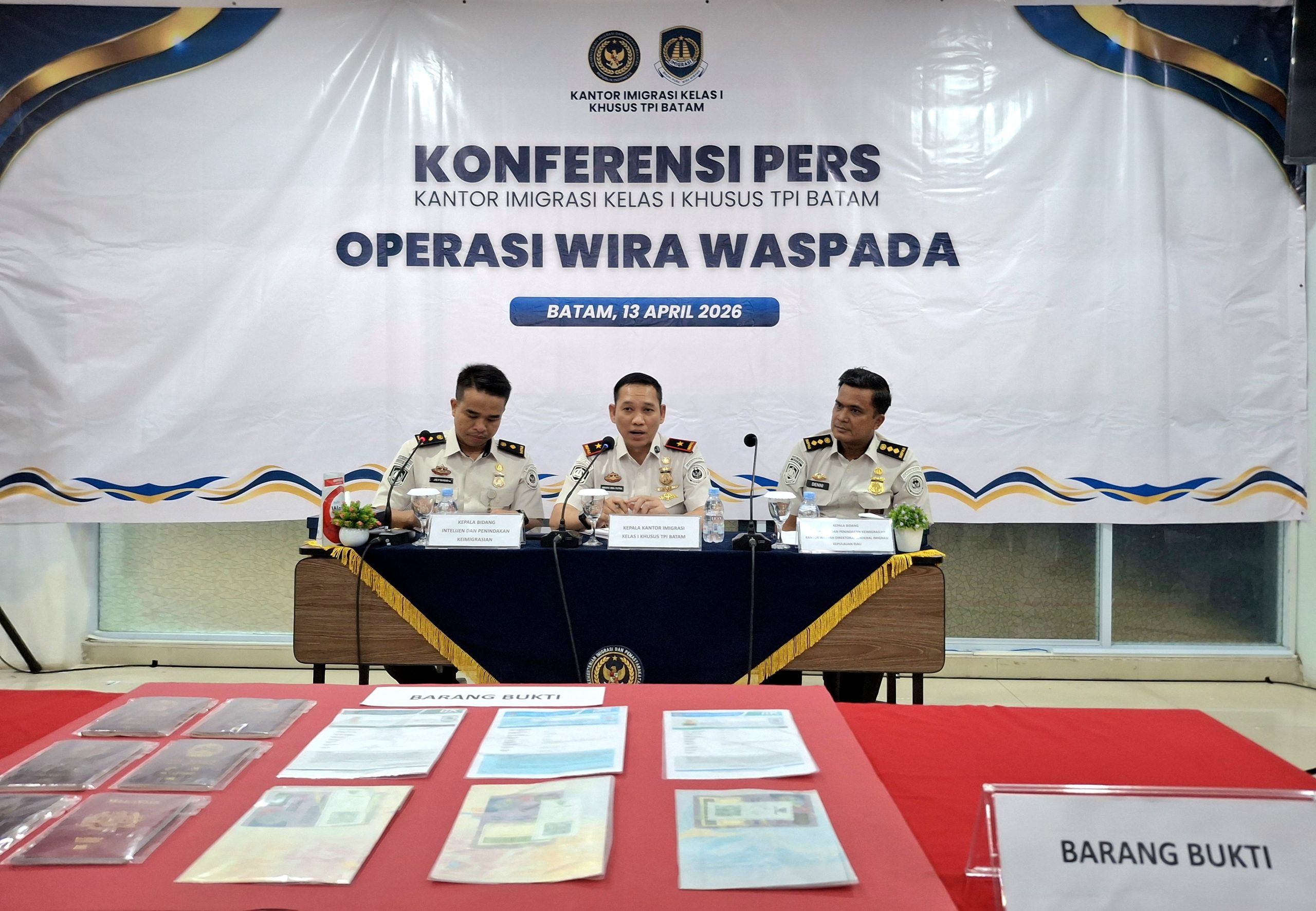 BATAM – Kantor Imigrasi Kelas I Khusus TPI Batam yang disampaikan melalui Kepala Kantor Imigrasi Kelas I Khusus TPI Batam, Wahyu Eka Putra memaparkan hasil pengawasan keimigrasian dalam rangkaian Operasi Wira Waspada 2026 pada hari Senin (13/4).